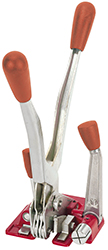 Tenditore manuale a trazione diretta. Per reggetta in polipropilene. Ideale per la chiusura di scatole in cartone ondulato e imballaggi. Utilizza reggetta da mm.13 e 16 e sigilli di tipo aperto.