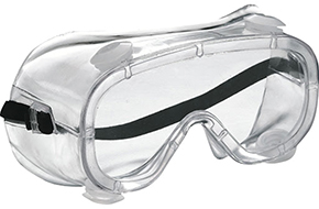 Occhiali a mascherina. Montatura in plastica morbida areata. Lente unica in materiale plastico infrangibile. CE certificati DPI EN166.