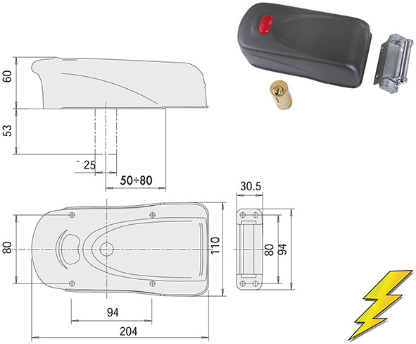 Per serramenti in legno. PULSANTE INTERNO. Scudo di protezione in acciaio. Reversibili ed entrata variabile da mm.50 a mm.80. Autoregolazione bocchetta. Cilindro art.0G200.55 ns.cod.837665. Con 3 chiavi art.01070.10.1 ns.cod.837709. Chiave grezza ricambio ns.cod.880380. Se abbinata a booster 07022.00 ns.cod.838843 si pu? utilizzare con tastiera numerica 06525.77 ns.cod.837743.