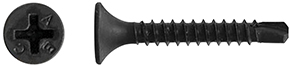 Viti autoperforanti fosfatate nere, testa a trombetta, punta a trapano. Impronta Philips n.2. Per il fissaggio di pannelli in cartongesso su supporti metallici spessore max mm.2,0.