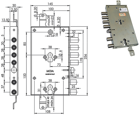 SERRATURE MOIA 6654/281DFB/S2 REVERSIBILE