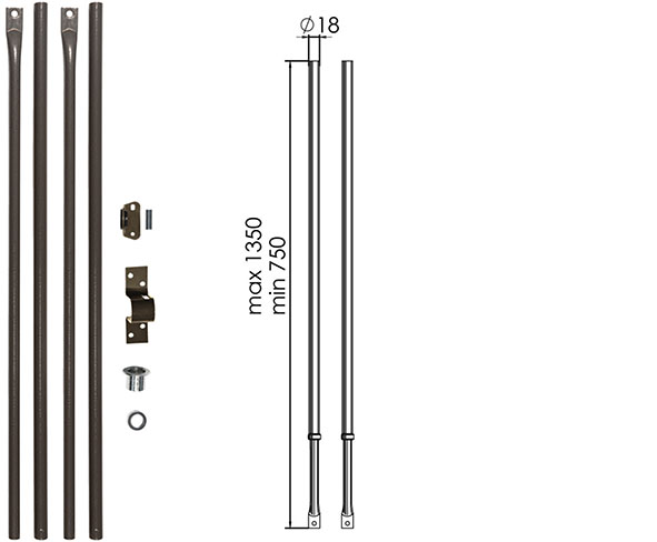 Aste marrone martellato, kit con accessori. Terminale rinforzato anti-taglio. Per serrature portoncino da applicare esterne serie M e A. Altezza min. mm.750, max. mm.1350.