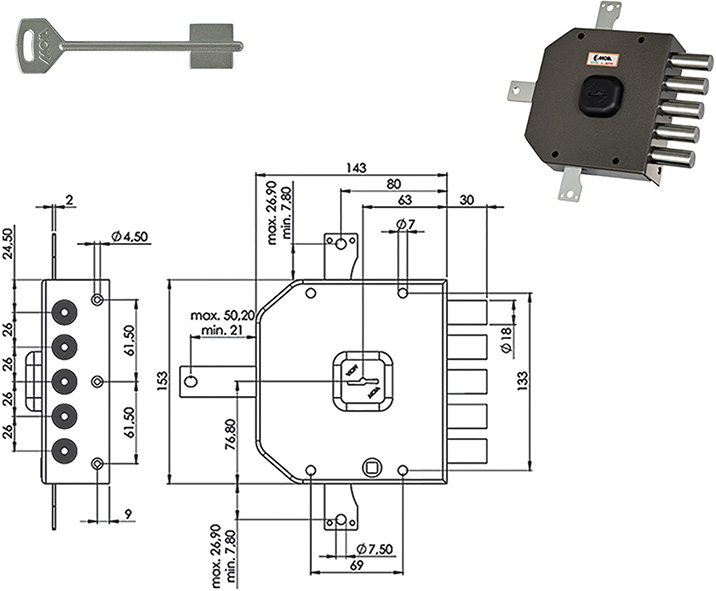 Serratura doppia mappa ad applicare. Quintuplice. 4 mandate. Piastra antitrapano interna. Sistema anti decodifica della chiave. 3 chiavi. Aste e deviatore non compresi. COMPATIBILE AUNO ANTONIOLI.