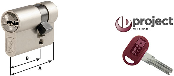 Mezzi cilindri dotati di 6 perni. Il corpo ? dotato di spine in materiale duro contro la foratura. Posizione a riposo della penna sfalsata di 30? rispetto al cilindro. Con 3 chiavi (in busta sigillata), 1 tessera di propriet?, 1 vite di fissaggio. La tessera di propriet? attesta solo la propriet? del cilindro e non serve per la duplicazione della chiave. Chiave ricambio ns. cod.845945.