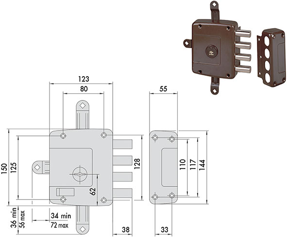 SERRATURE CISA APPLICARE DOPPIA MAPPA ART.57172