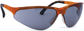 Design sportivo. Montatura arancione. Stanghette regolabili in lunghezza. Morbidi appoggi sul naso adattabili. Lente antisole antigraffio in policarbonato. Protezione UV 100%. CE certificati DPI EN166-EN170.