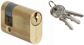 Mezzi cilindri ovali da infilare in ottone. 5 perni. Con 3 chiavi art.01410.00.1 ns.cod.837694 (grezza ricambio ns.cod.880358).