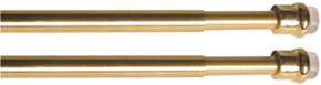 Bacchette per tende A MOLLA, in ottone lucido, sezione tonda, con terminali A VENTOSA. Per tutti i tipi di infissi, dal tradizionale in legno, ai nuovi infissi in alluminio ed in PVC.