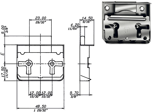 Serratura per antine e cassetti da applicare. A leva. Rotazione 360? (2 uscite chiave). Senza chiavi art.O699 ns.cod.849412/13/14.