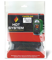 Guarnizione piatta autoadesiva in fibra di vetro resistente alle altissime temperature (550?C). Ideale per gli sportelli di forni, caminetti, caldaie, stufe.
