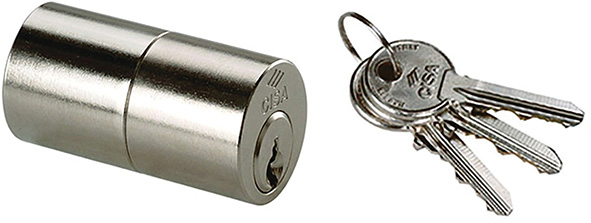 Cilindri tondi da applicare in ottone NICHELATO. C2000. 5 perni. Per serrature serie: 1A611. Con 3 chiavi art.01070.10.1 ns.cod.837709 (grezza ricambio ns.cod.880380).